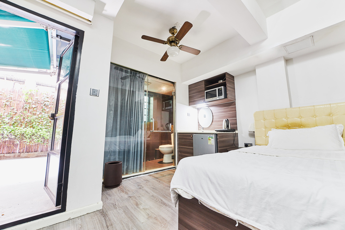 Studio with Terrace 230 Sq. Ft in size with about 180 Sq. Ft Terrace. The apartments come with double beds, an open-plan seating area, an entertainment system with television and all the necessary housewares are included.