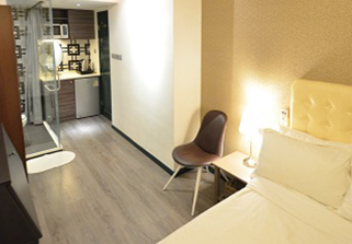 Sleek, fully equipped kitchenette with a microwave oven